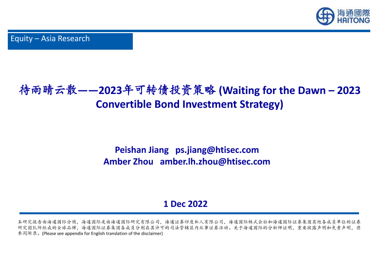 【海通国际】【20221201】2023年可转债投资策略:待雨晴云散-47页