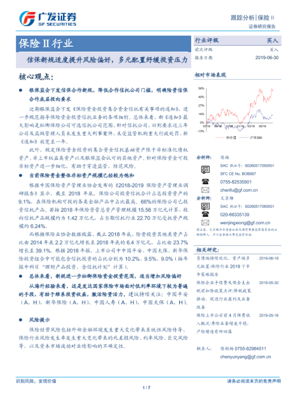 【广发证券】【20190630】保险Ⅱ行业:信保新规适度提升风险偏好,多元配置纾缓投资压力-7页