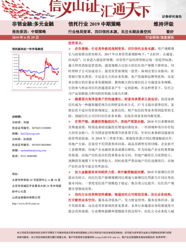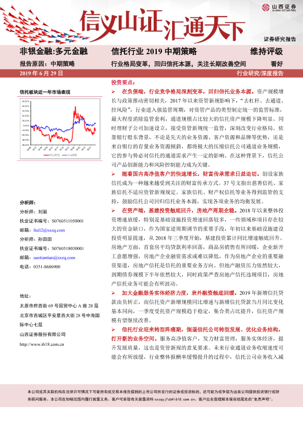 【山西证券】【20190629】信托行业2019中期策略:行业格局变革,回归信托本源,关注长期改善空间-25页