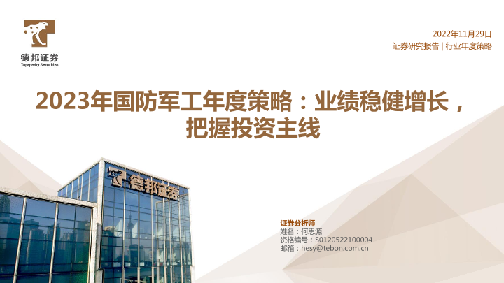 【德邦证券】【20221129】2023年国防军工年度策略:业绩稳健增长,把握投资主线-50页
