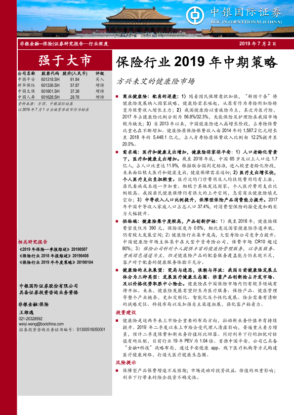 【中银证券】【20190702】保险行业2019年中期策略:方兴未艾的健康险市场-20页