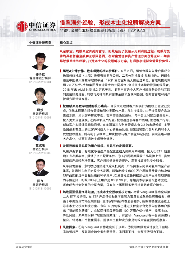 【中信证券】【20190703】非银行金融行业蚂蚁金服系列报告:借鉴海外经验,形成本土化投顾解决方案-21页