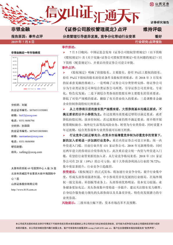 分类管理 竞争分化 行业变革 证券公司股权管理 非银金融