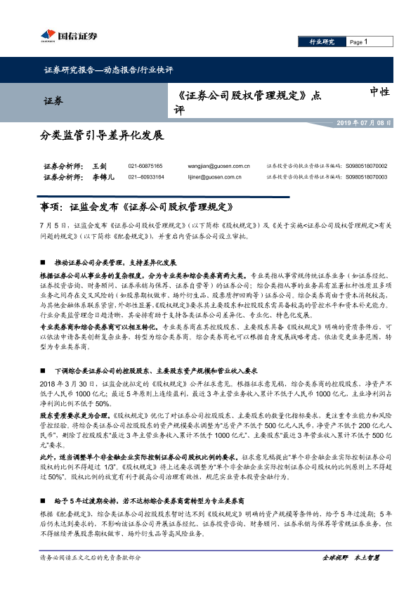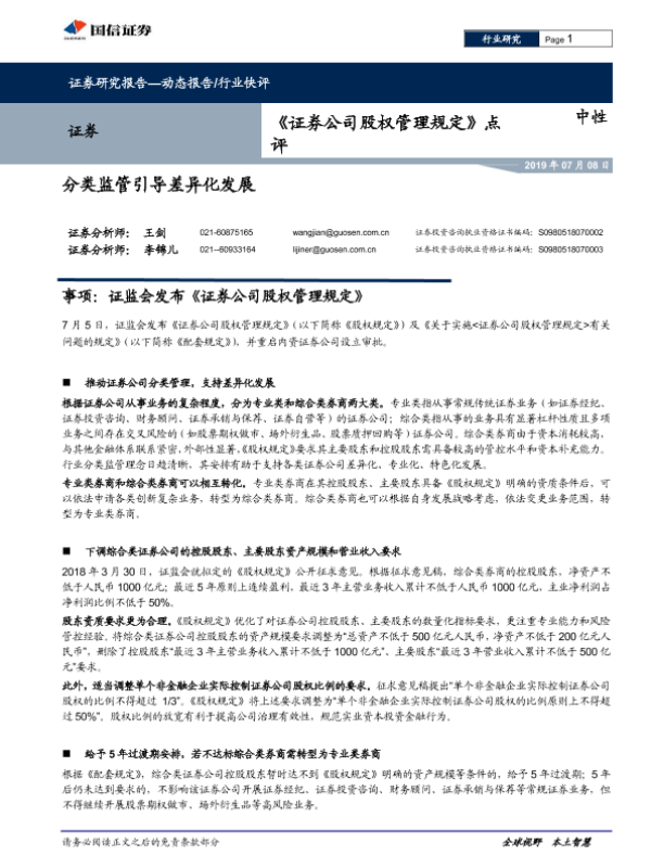 【国信证券】【20190708】《证券公司股权管理规定》点评:分类监管引导差异化发展-4页