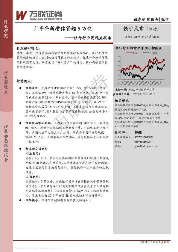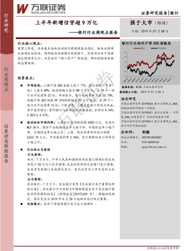 【万联证券】【20190708】银行行业周观点报告:上半年新增信贷超9万亿-10页
