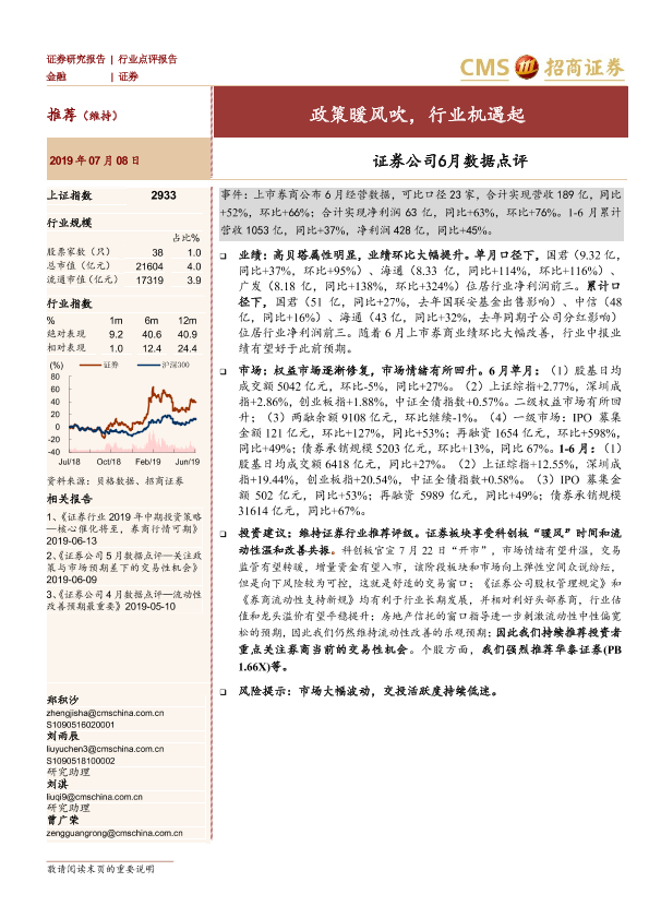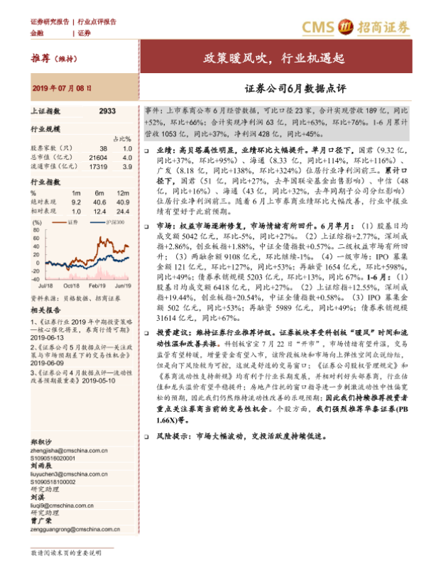 【海通证券】【20190708】证券公司6月数据点评:政策暖风吹,行业机遇起-3页