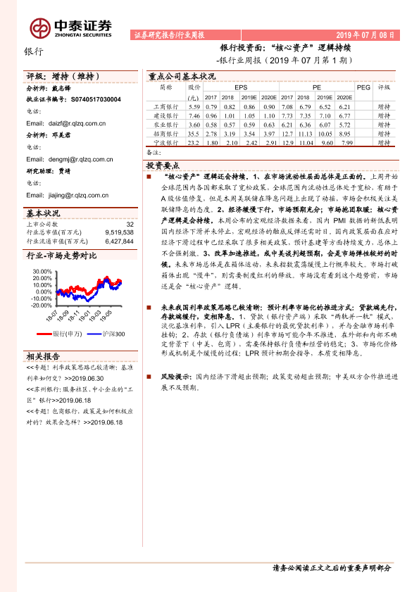 【中泰证券】【20190708】银行投资面:“核心资产”逻辑持续-15页