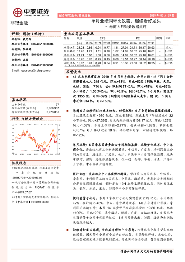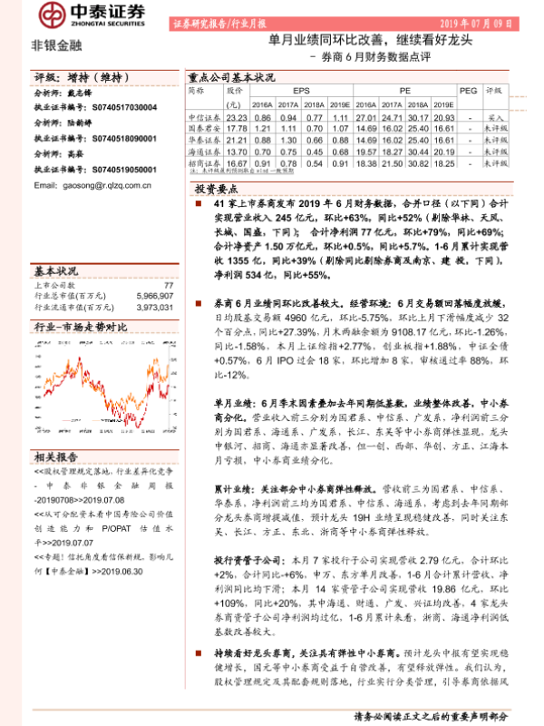 【中泰证券】【20190709】非银金融券行业月报:商6月财务数据点评-10页