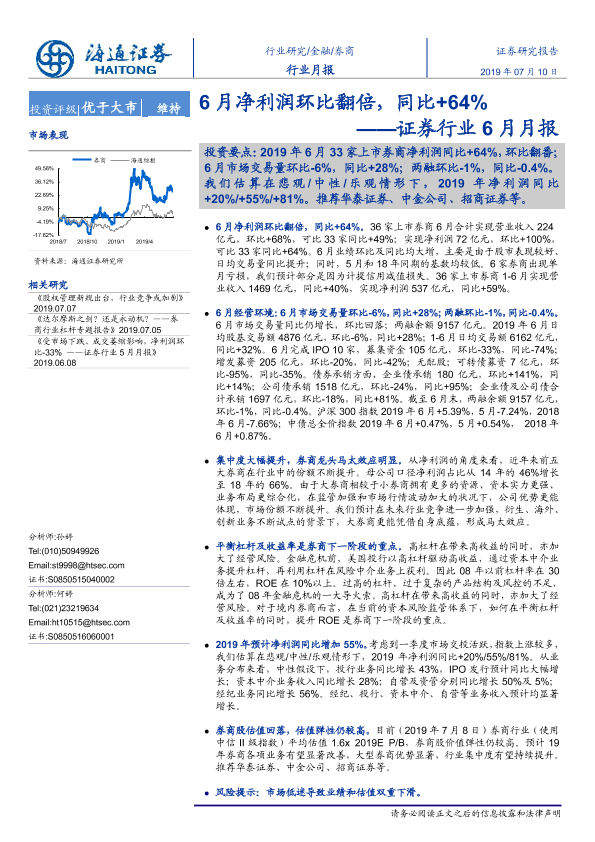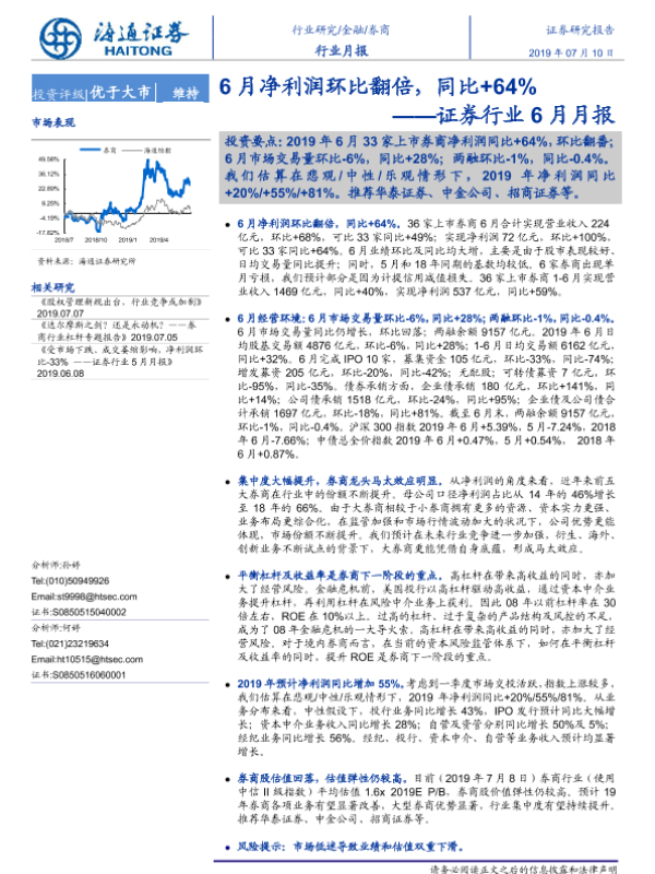 【海通证券】【20190710】证券行业6月月报:6月净利润环比翻倍,同比+64%-8页
