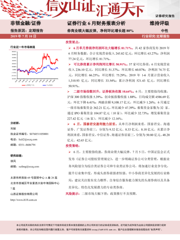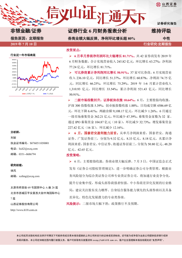【山西证券】【20190710】证券行业6月财务报表分析:券商业绩大幅反弹,净利环比增长超80%-6页