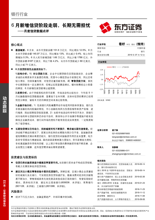 【东方证券】【20190712】6月新增信贷阶段走弱,长期无需担忧-3页
