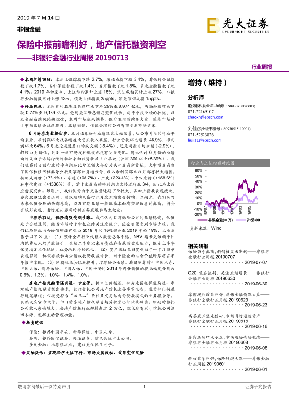 【光大证券】【20190714】非银行金融行业周报:保险中报前瞻利好,地产信托融资利空-13页