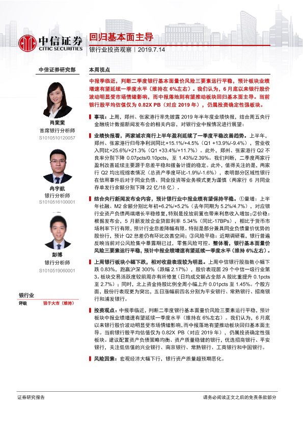【中信证券】【20190714】银行业投资观察:回归基本面主导-9页