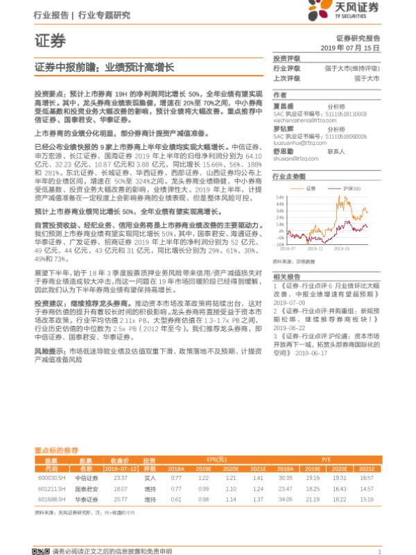 【天风证券】【20190715】证券中报前瞻:业绩预计高增长-9页
