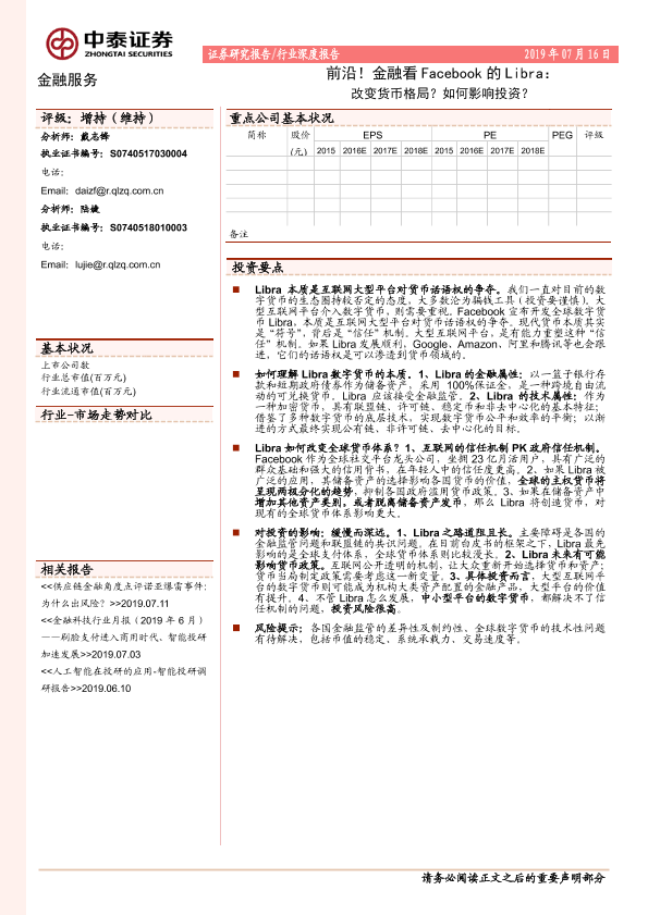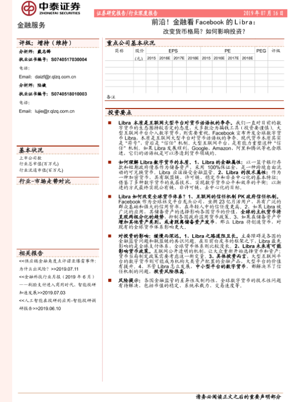 【中泰证券】【20190716】金融服务行业深度报告:前沿!金融看Facebook的Libra:改变货币格局?如何影响投资?-13页
