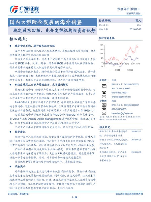 【广发证券】【20190718】国内大型险企发展的海外借鉴:稳定股东回报,充分发挥机构投资者优势-29页