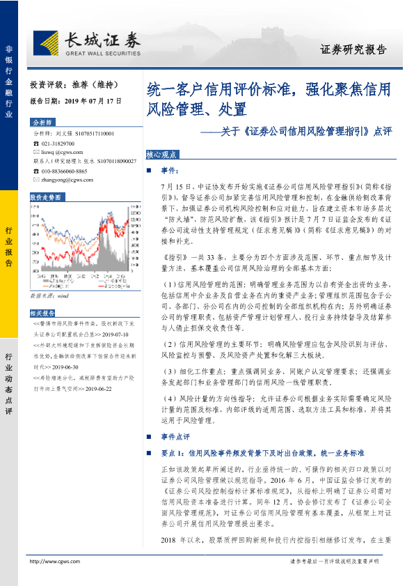 【长城证券】【20190717】关于《证券公司信用风险管理指引》点评:统一客户信用评价标准,强化聚焦信用风险管理、处置-6页