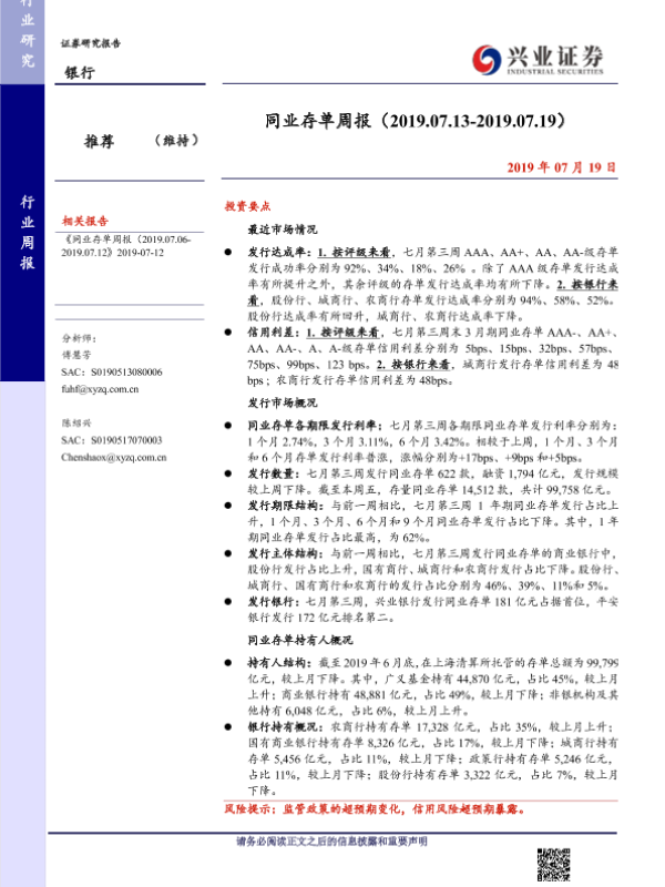 【兴业证券】【20190719】同业存单周报-13页