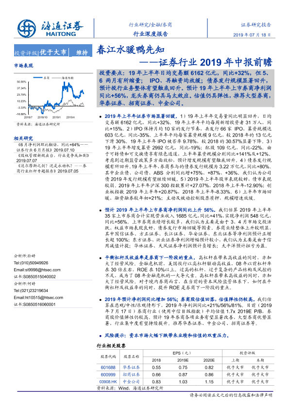 【海通证券】【20190718】证券行业2019年中报前瞻:春江水暖鸭先知-17页