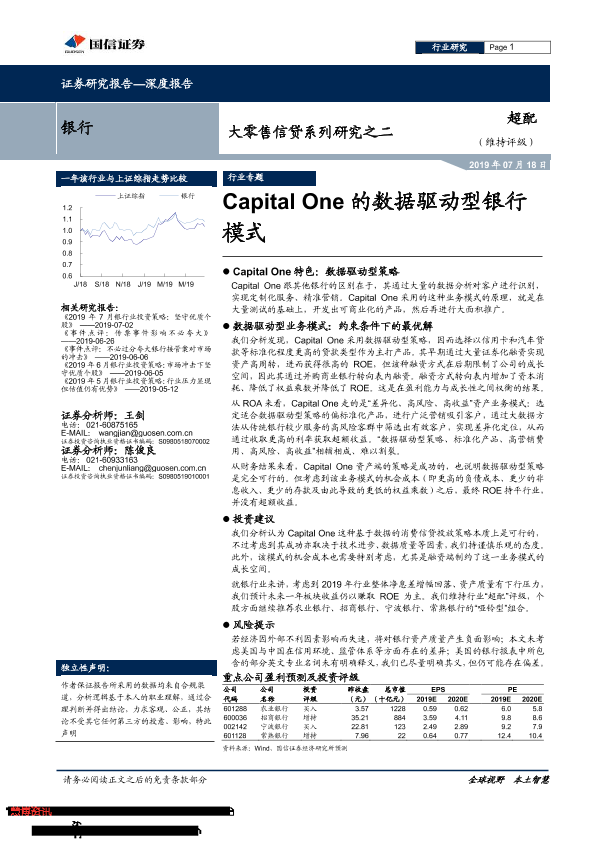 【国信证券】【20190718】银行深度报告:大零售信贷系列研究之二-Capital One的数据驱动型银行模式-24页
