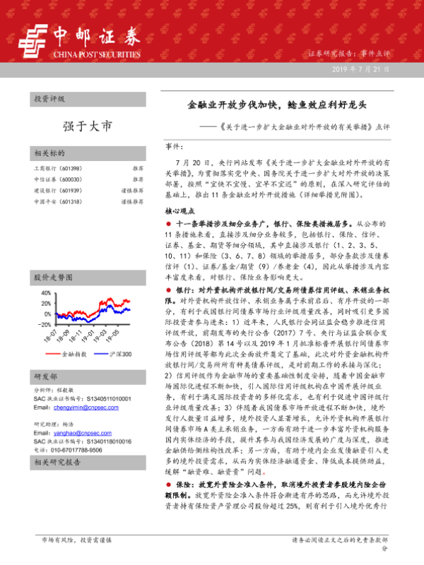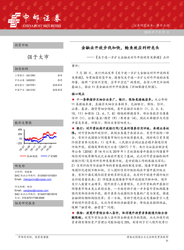 保险业 政策解读 证券评级 金融业对外开放 银行业