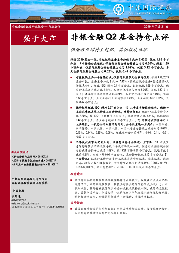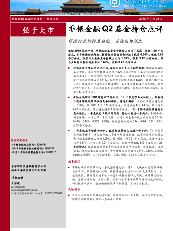 【中银证券】【20190721】非银金融Q2基金持仓点评-6页