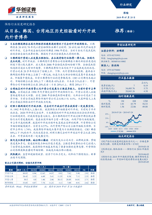 【华创证券】【20190725】保险行业深度研究报告:从日本、韩国、台湾地区历史经验看对外开放内外资博弈-15页