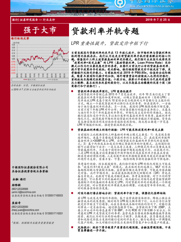【中银证券】【20190725】银行行业点评:贷款利率并轨专题-LPR重要性提升,贷款定价中枢下行-16页
