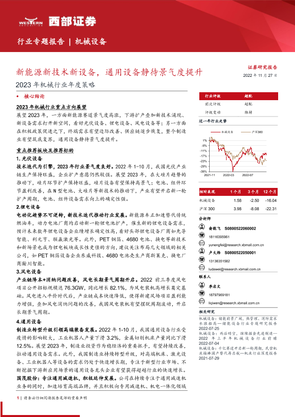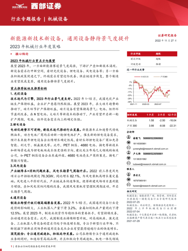 【西部证券】【20221127】2023年机械行业年度策略:新能源新技术新设备,通用设备静待景气度提升-51页