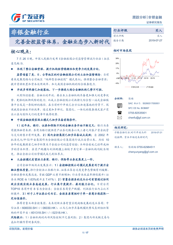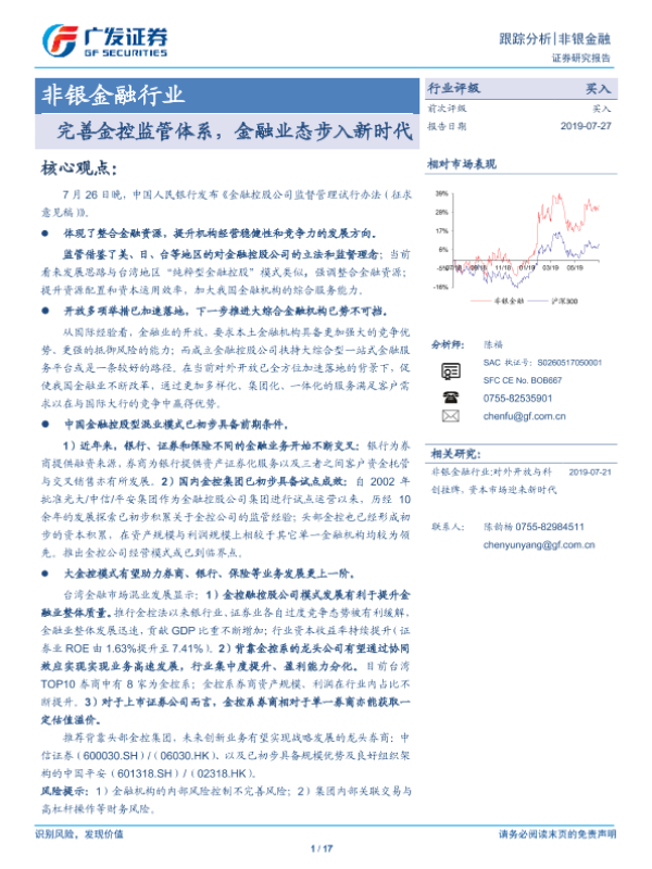【广发证券】【20190727】非银金融行业:完善金控监管体系,金融业态步入新时代-17页