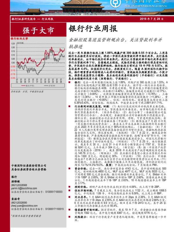 【中银证券】【20190728】银行行业周报:金融控股集团监管新规出台,关注贷款利率并轨推进-18页
