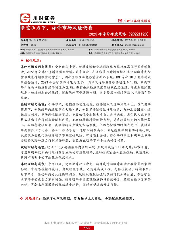 【川财证券】【20221128】2023年海外年度策略:多重压力下,海外市场风险仍存-25页