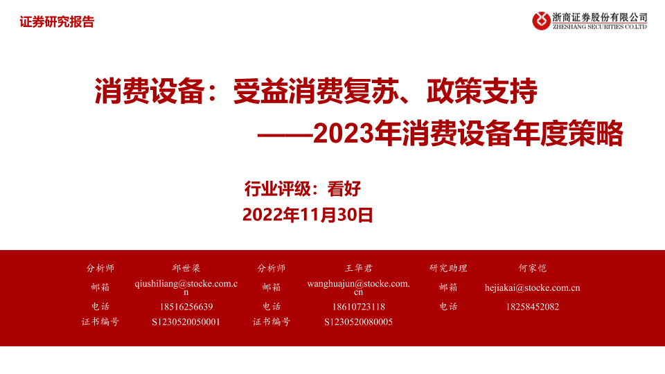 【浙商证券】【20221130】2023年消费设备行业年度策略:受益消费复苏、政策支持-36页