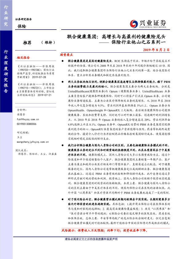 【兴业证券】【20190802】联合健康集团:高增长与高盈利的健康险龙头-25页