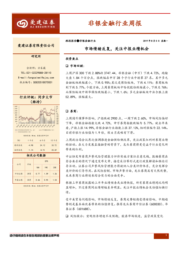 【爱建证券】【20190805】非银金融行业周报:市场情绪反复,关注中报业绩机会-12页