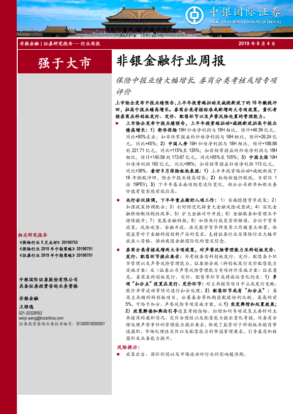 【中银证券】【20190804】非银金融行业周报:保险中报业绩大幅增长,券商分类考核或增专项评价-12页