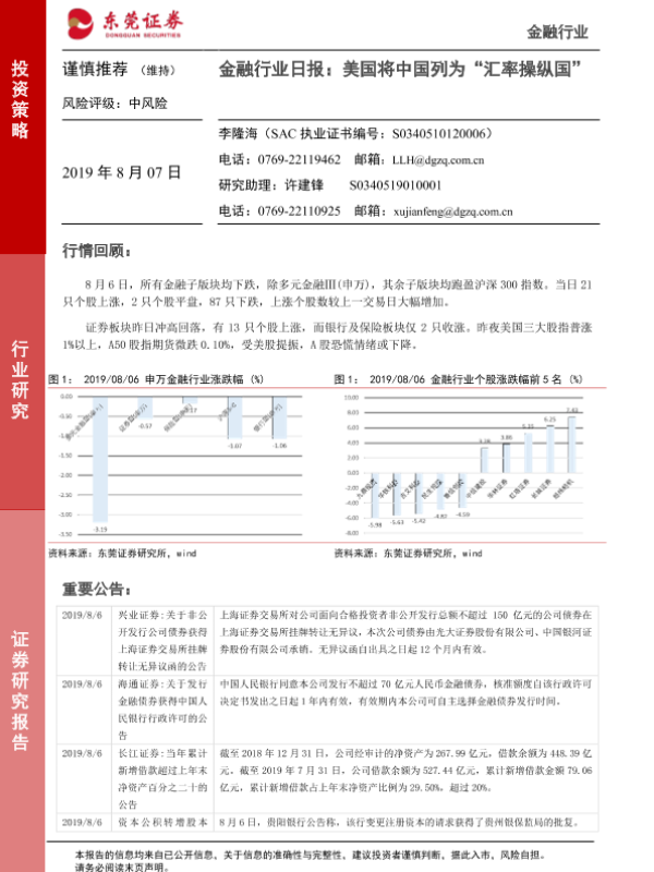 【东莞证券】【20190807】金融行业日报:美国将中国列为“汇率操纵国”-6页
