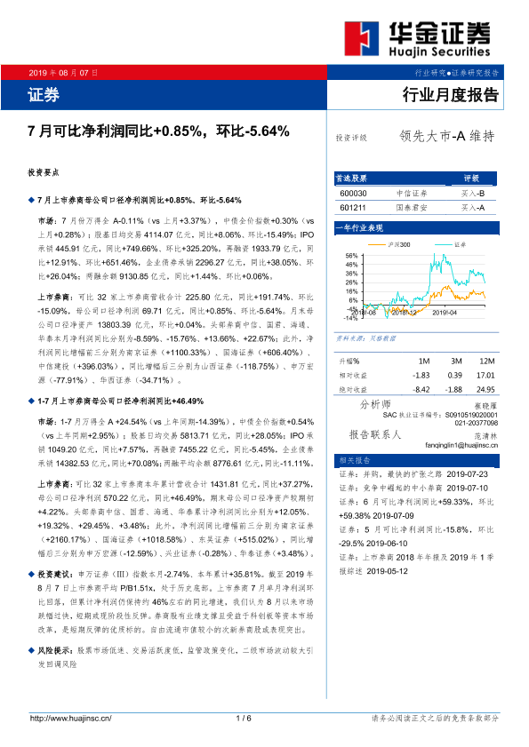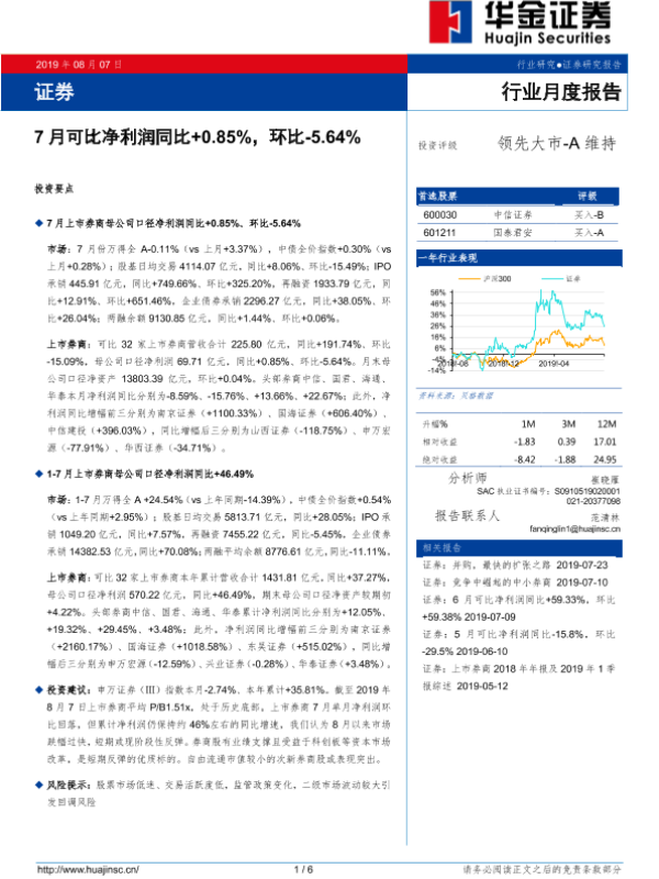 【华金证券】【20190807】证券行业月度报告:7月可比净利润同比+0.85%,环比-5.64%-6页