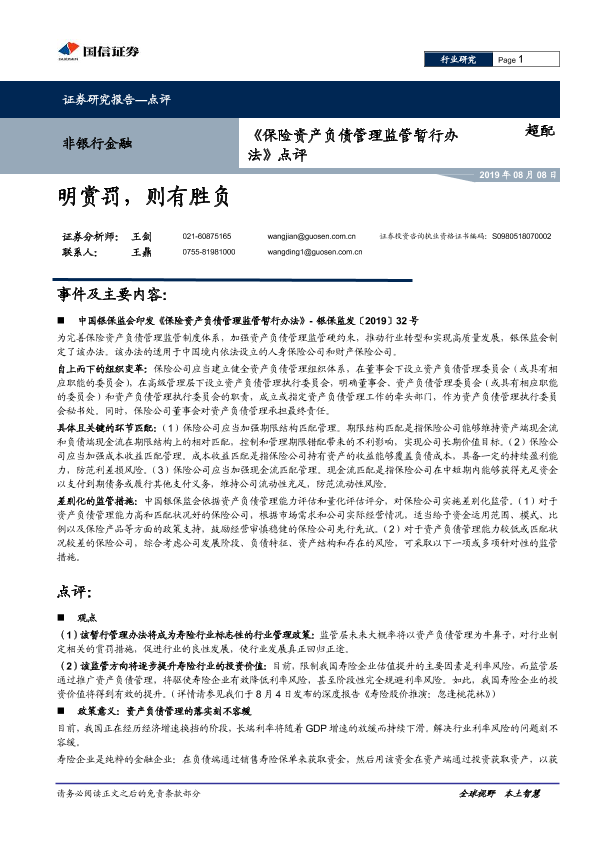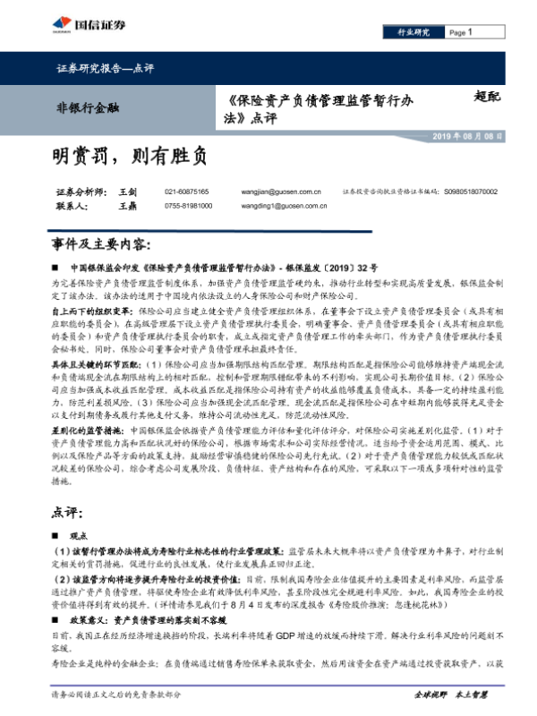 【国信证券】【20190808】《保险资产负债管理监管暂行办法》点评:明赏罚,则有胜负-5页