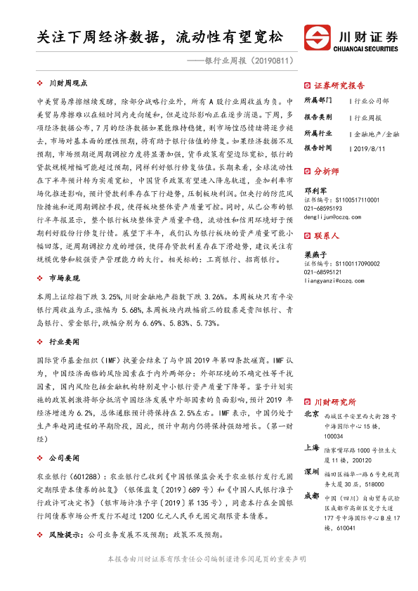 【川财证券】【20190811】银行业周报:关注下周经济数据,流动性有望宽松-12页