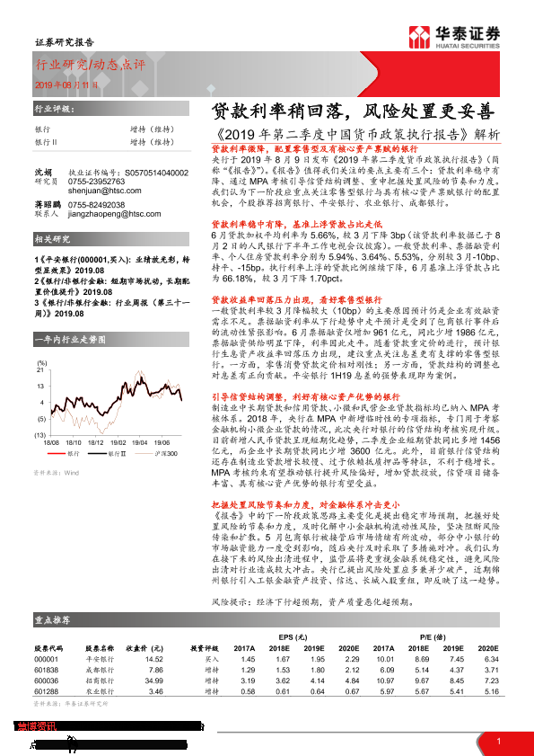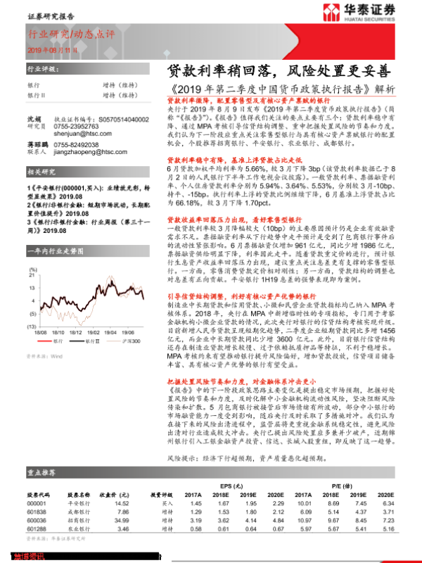 【华泰证券】【20190811】2019年第二季度中国货币政策执行报告解析:贷款利率稍回落,风险处置更妥善-3页