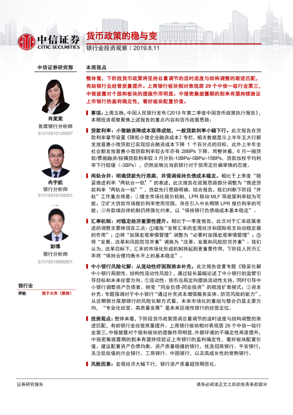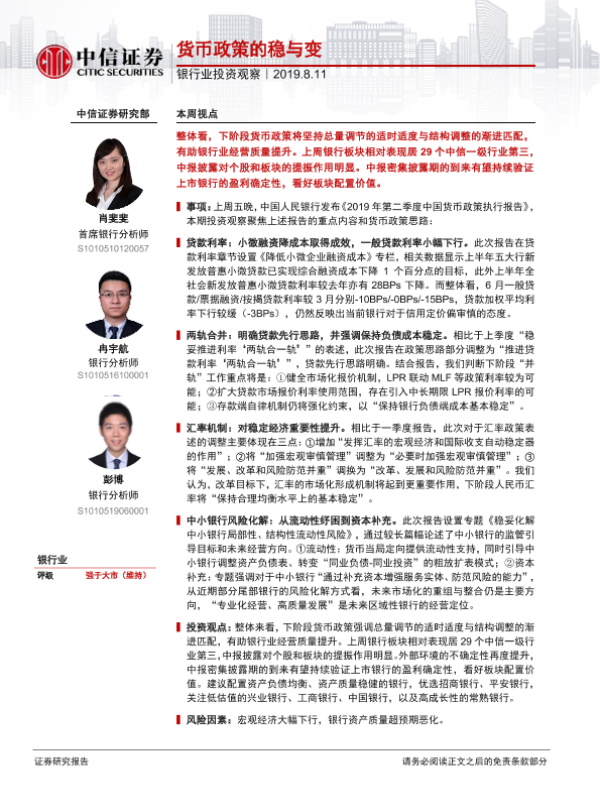 【中信证券】【20190811】银行业投资观察:货币政策的稳与变-9页