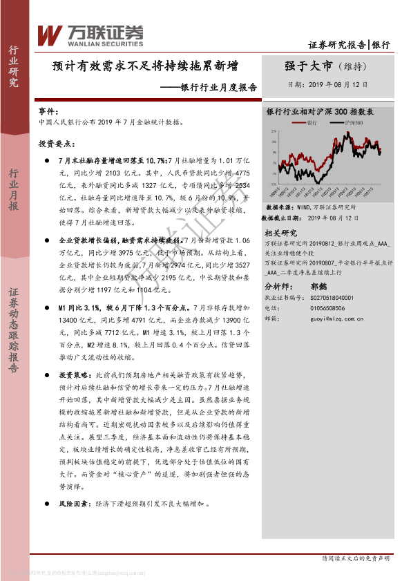 【万联证券】【20190812】银行行业月度报告:预计有效需求不足将持续拖累新增-5页