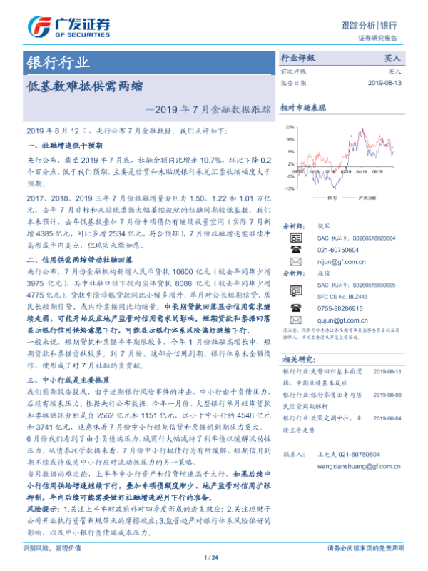 【广发证券】【20190813】2019年7月份金融数据跟踪:低基数难抵供需两缩-24页