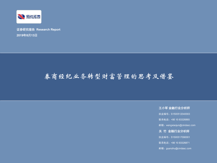 【信达证券】【20190813】券商经纪业务转型财富管理的思考及借鉴-32页