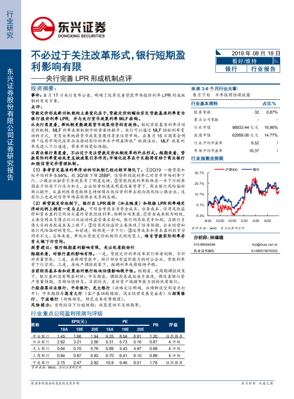 【东兴证券】【20190818】央行完善LPR形成机制点评:不必过于关注改革形式,银行短期盈利影响有限-5页