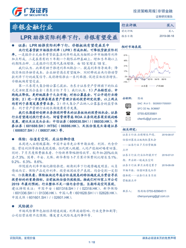 【广发证券】【20190818】非银金融行业投资策略周报:LPR助推实际利率下行,非银有望受益-12页