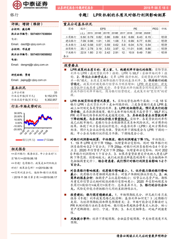 【中泰证券】【20190818】LPR机制的本质及对银行利润影响测算-13页