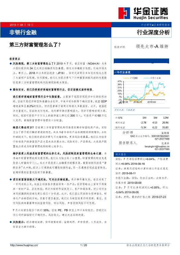 【华金证券】【20190819】非银行金融行业深度分析:第三方财富管理怎么了?-20页