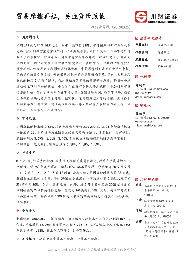 【川财证券】【20190825】贸易摩擦再起,关注货币政策-12页